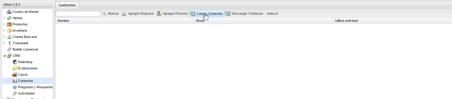 3. Dentro de estas opciones, debemos dar click a "Cargar contactos" tal como se muestra en la imagen a continuación.
