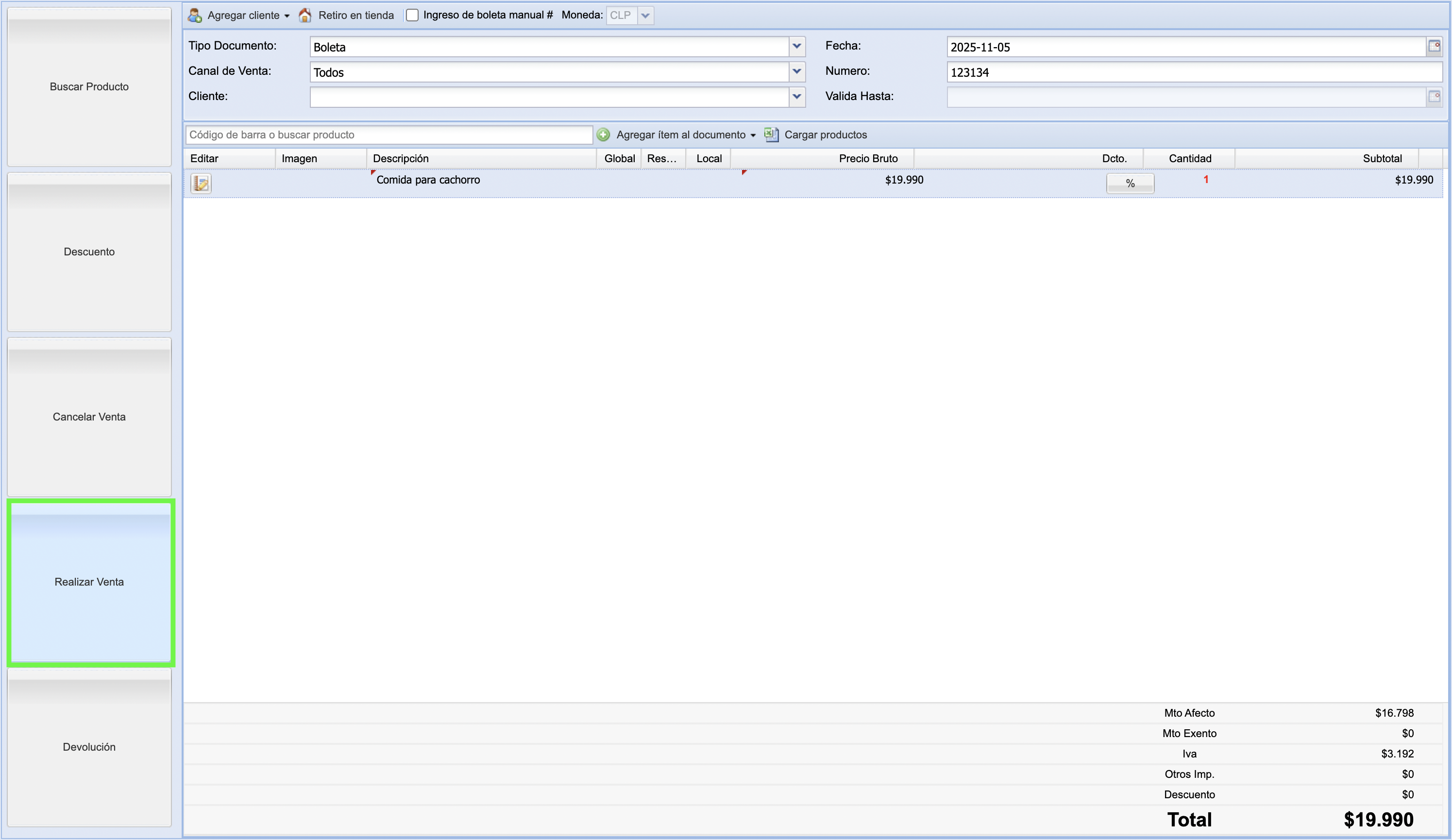 Con la descripción y el precio ingresados, podrás continuar el proceso de venta de forma normal, tal como lo harías con cualquier otro producto del sistema.